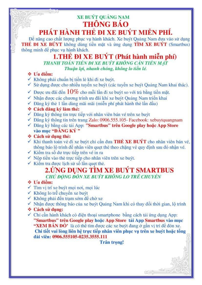Xe buýt Quảng Nam cung cấp các dịch vụ tiện ích cho khách hàng đi xe buýt bao gồm: