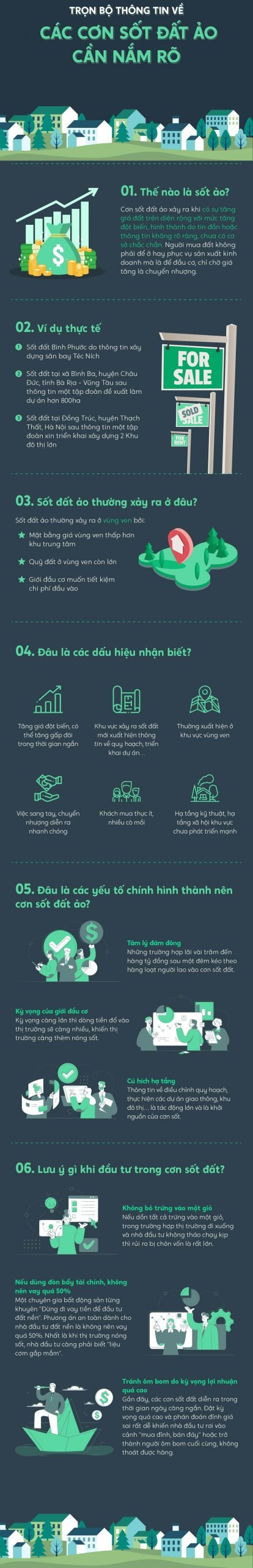 Bỏ tiền vào đầu tư thời điểm sốt đất có thể mang về khoản lợi nhuận “khủng”. Tuy nhiên, nếu chỉ nhảy vào thị trường với niềm tin và sự liều lĩnh, rủi ro cho nhà đầu tư là rất lớn. Việc nắm vững mọi thông tin liên quan đến các cơn sốt đất ảo cùng khả năng phán đoán thị trường tốt sẽ giúp suất đầu tư thêm chắc ăn.