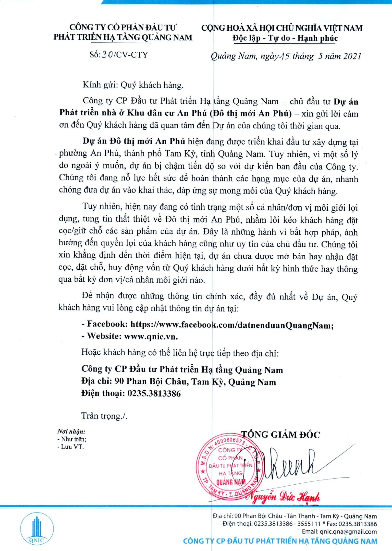Thư gửi Quý khách hàng Dự án Đô thị mới An Phú
